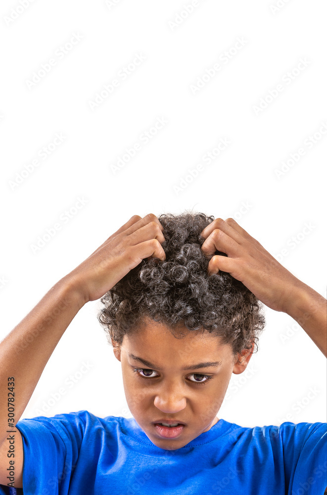 Sad Young Boy Scratching Hair For Head Lice Or Allergies Stock Photo Adobe Stock
